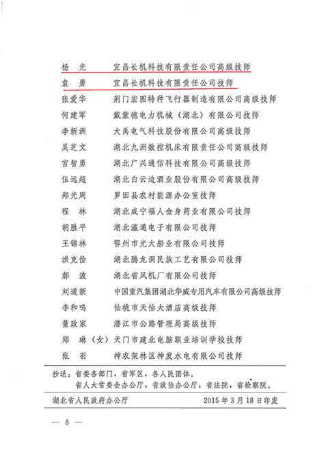 熱烈祝賀宜昌長機(jī)科技公司楊光、袁勇同志獲湖北省首席技師榮譽(yù)稱號(hào)