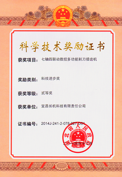 宜昌長機(jī)科技公司七軸四聯(lián)動(dòng)數(shù)控多功能剃刀插齒機(jī)獲省“科技進(jìn)步獎(jiǎng)”二等獎(jiǎng)