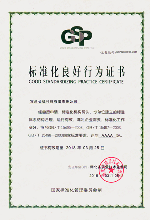 宜昌長(zhǎng)機(jī)科技公司榮獲”標(biāo)準(zhǔn)化良好行為“證書(shū)