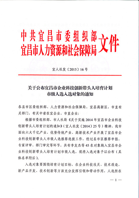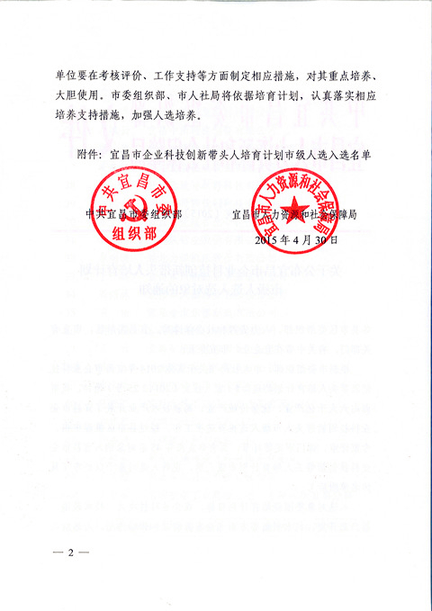 宜昌長機科技胡天明、王維被納入宜昌市企業(yè)科技創(chuàng)新帶頭人培育計劃市級人選入選對象