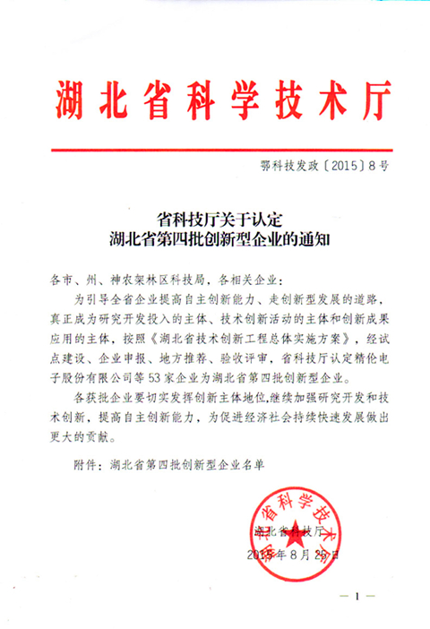宜昌長機科技公司榮獲湖北省創(chuàng)新型企業(yè)