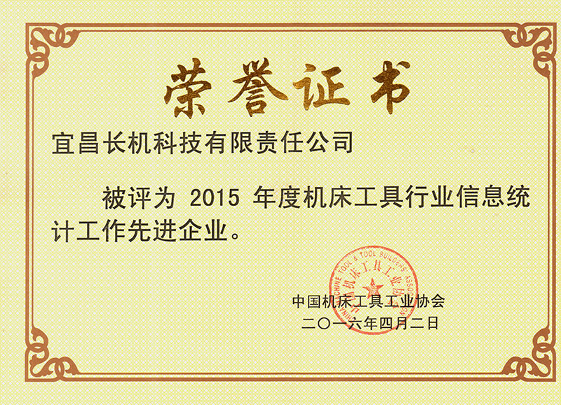 宜昌長機科技有限責任公司獲得由中國機床工具工業(yè)協(xié)會授予的“2015年度機床工具行業(yè)信息統(tǒng)計工作先進企業(yè)”榮譽。