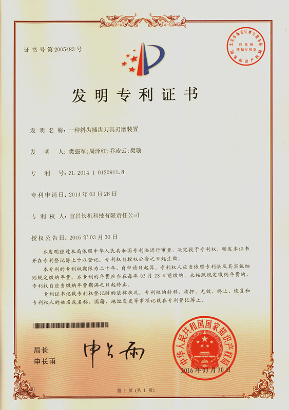 公司“用于回轉(zhuǎn)工作臺的工件自動(dòng)夾緊裝置”、“插齒機(jī)側(cè)向精度調(diào)節(jié)裝置”和“一種斜齒插齒刀具刃磨裝置”獲發(fā)明專利,按公司規(guī)定,獎(jiǎng)勵(lì)三項(xiàng)專利發(fā)明人各8000元以資鼓勵(lì)。