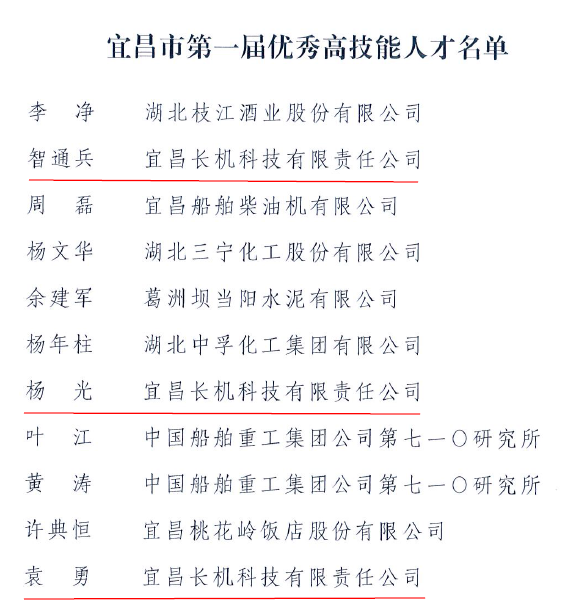 智通兵、楊光、袁勇獲宜昌市第一屆“優(yōu)秀高技能人才”榮譽