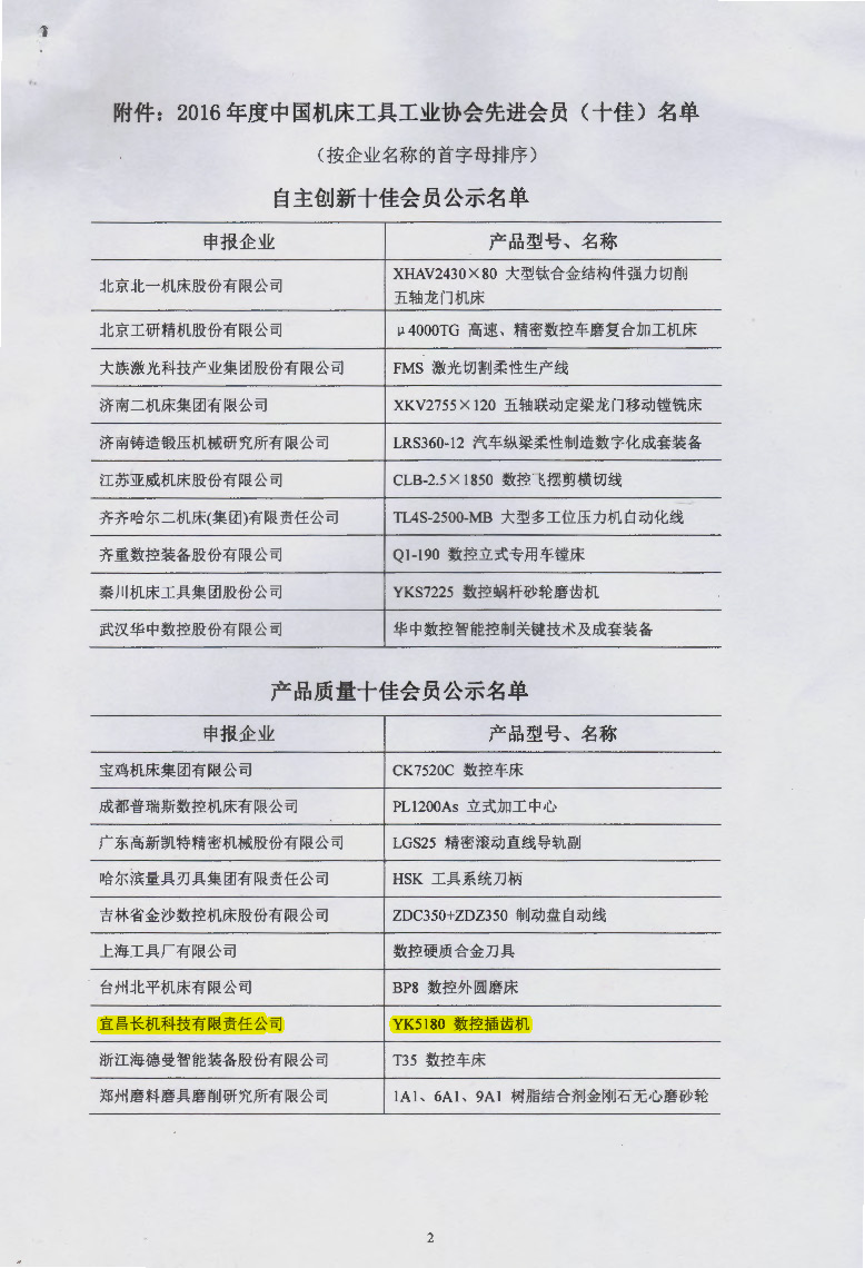 公司獲2016年度中國機(jī)床工具工業(yè)協(xié)會(huì)先進(jìn)會(huì)員(十佳)榮譽(yù)