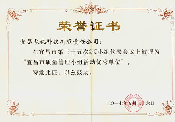宜昌長機科技有限責(zé)任公司在宜昌市第三十五次QC小組代表會議上被評為“宜昌市質(zhì)量管理小組活動優(yōu)秀單位”。