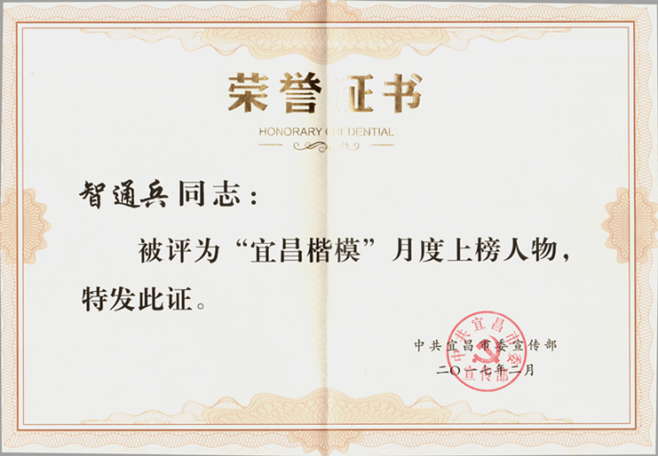 智通兵被宜昌市委宣傳部評為“宜昌楷?!痹露壬习袢宋?。(責(zé)任編輯:丁業(yè)超)