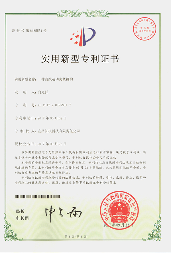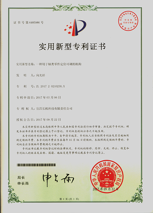 公司“一種插齒機(jī)刀架體前后擺動(dòng)導(dǎo)向機(jī)構(gòu)”榮獲發(fā)明專利,“一種旋轉(zhuǎn)分度后的夾緊機(jī)構(gòu)”、“一種直線運(yùn)動(dòng)夾緊機(jī)構(gòu)”、 “ 一種用于軸類零件定位可調(diào)的機(jī)構(gòu)”等榮獲實(shí)用新型專利。