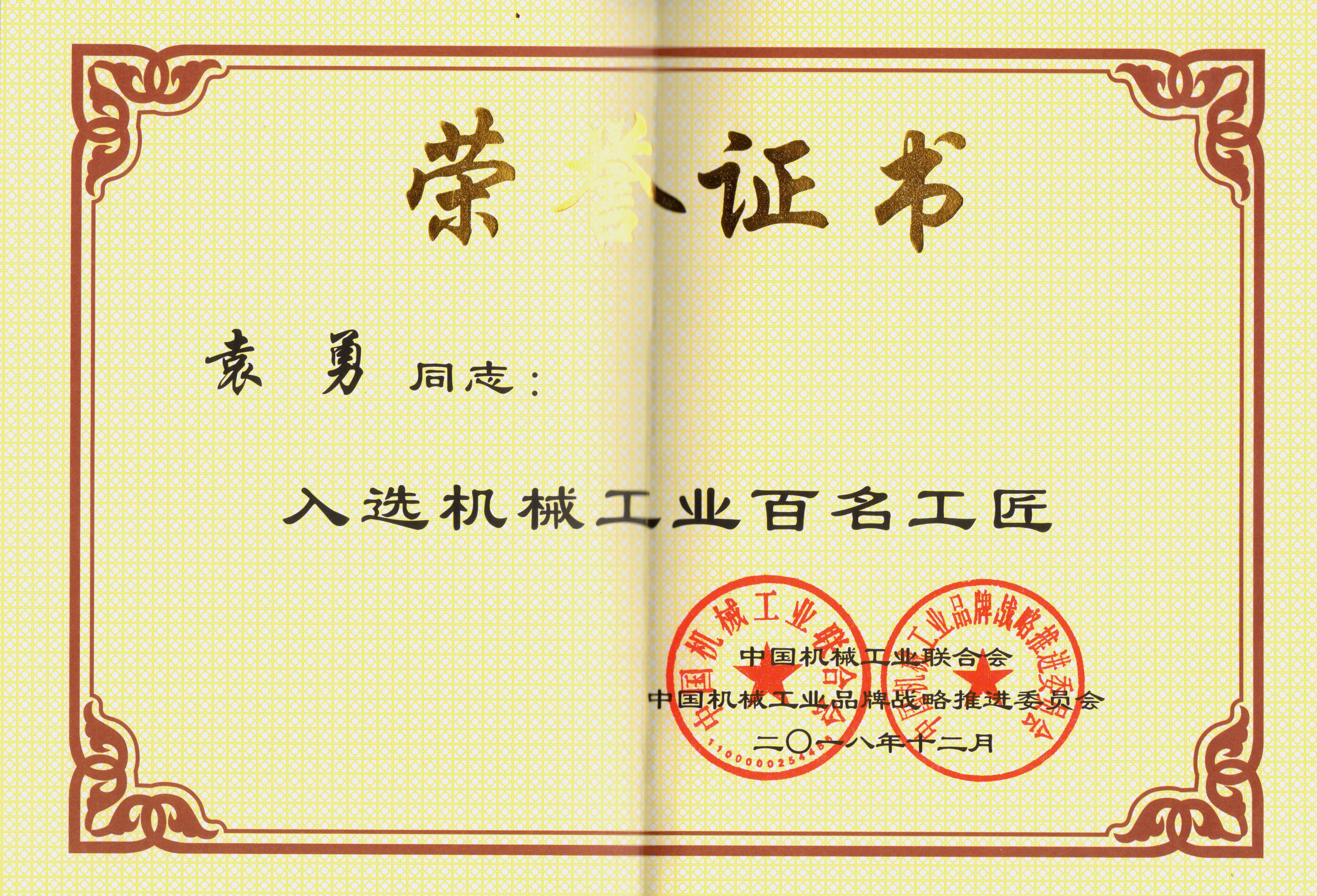 公司袁勇入選機(jī)械工業(yè)百名工匠