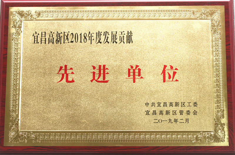 公司獲得由宜昌高新區(qū)工委、管委會授予的“2018年度發(fā)展貢獻先進單位”榮譽稱號。