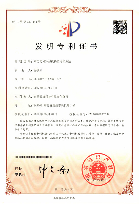 公司榮獲一項(xiàng)發(fā)明專利、一項(xiàng)實(shí)用新型專利