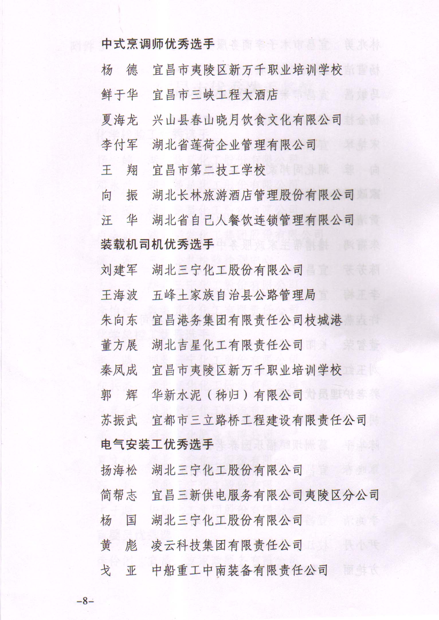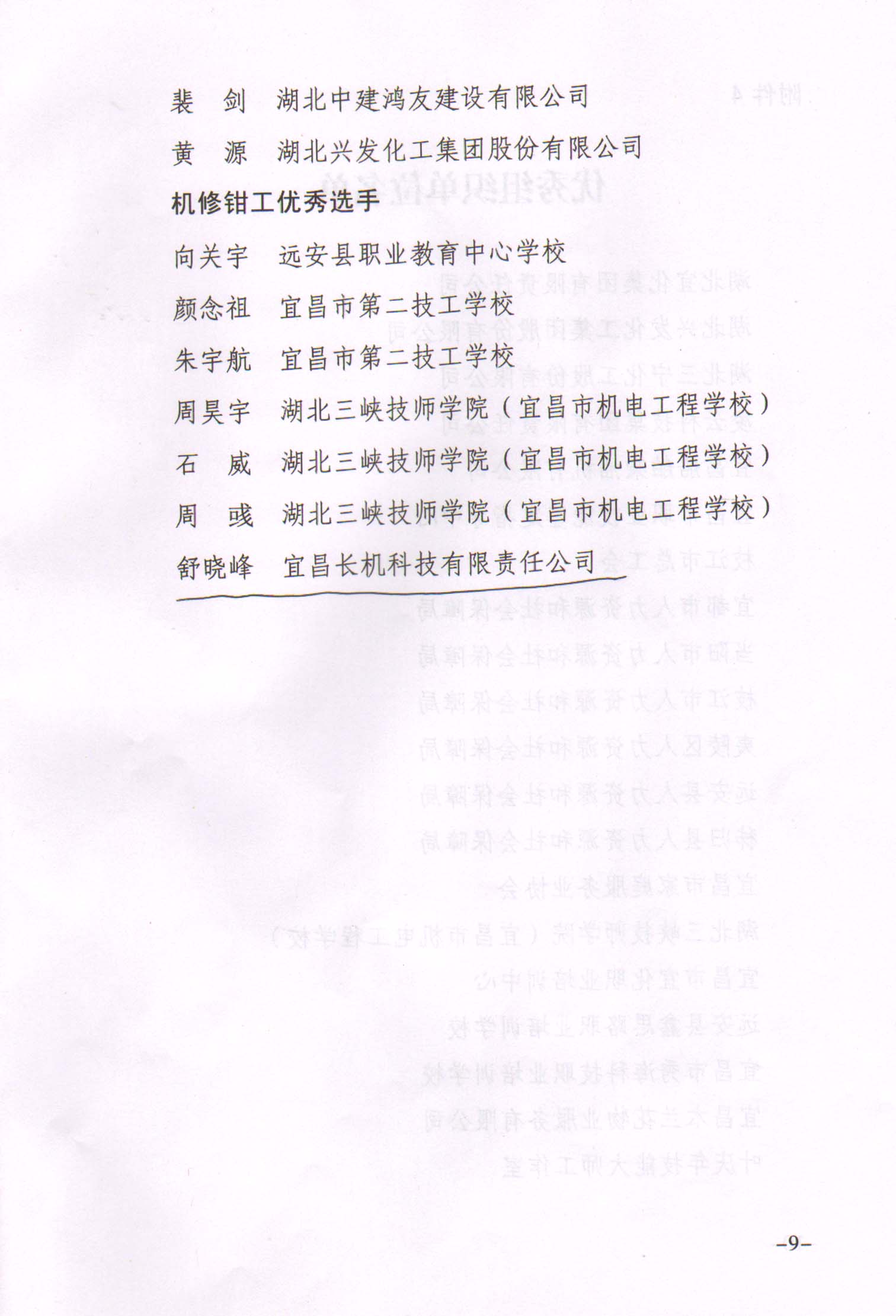 舒曉峰榮獲宜昌市第五屆技能狀元大賽“優(yōu)秀選手”