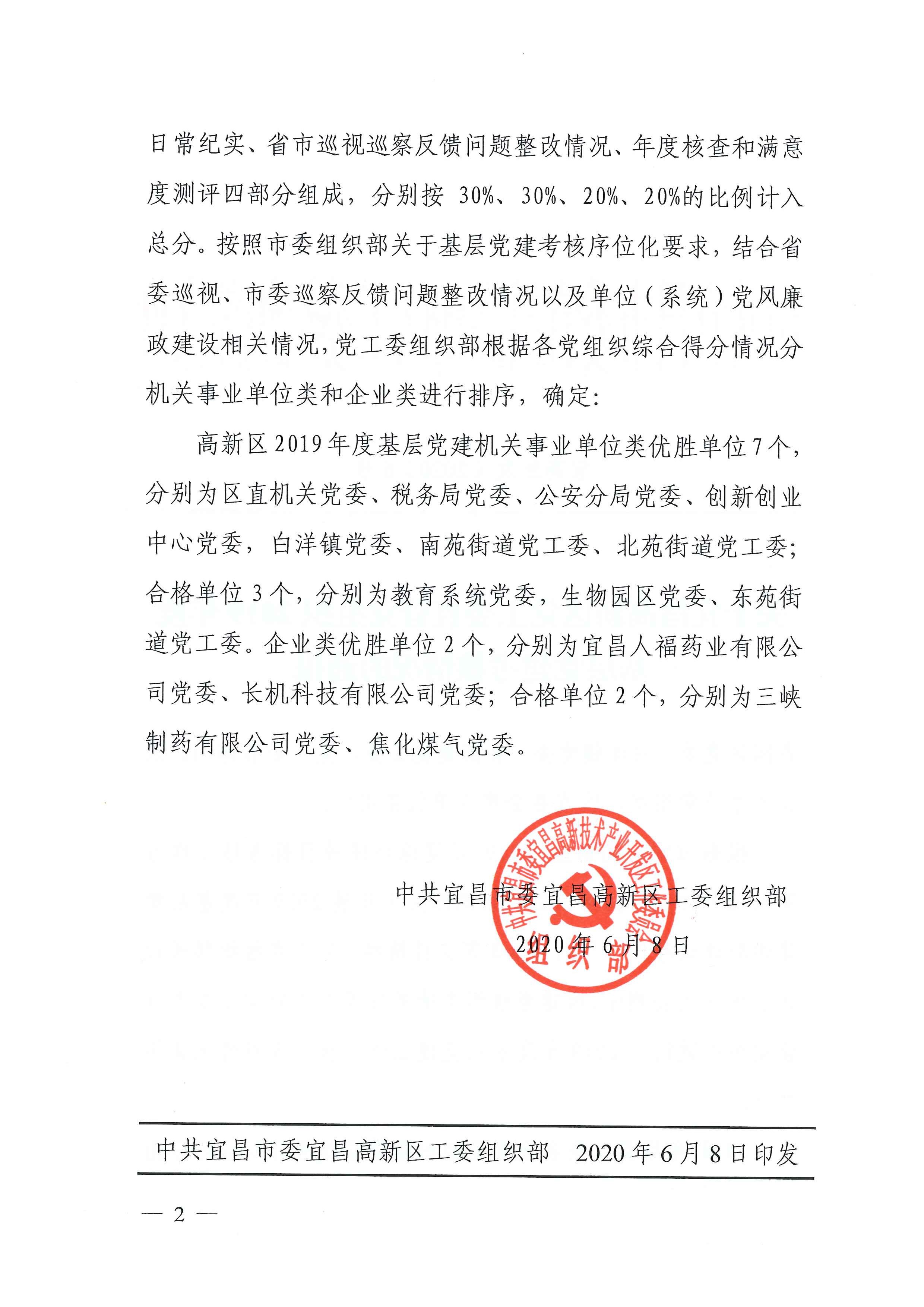 公司黨委在高新區(qū)2019年度基層黨建考核中被評定為優(yōu)勝單位