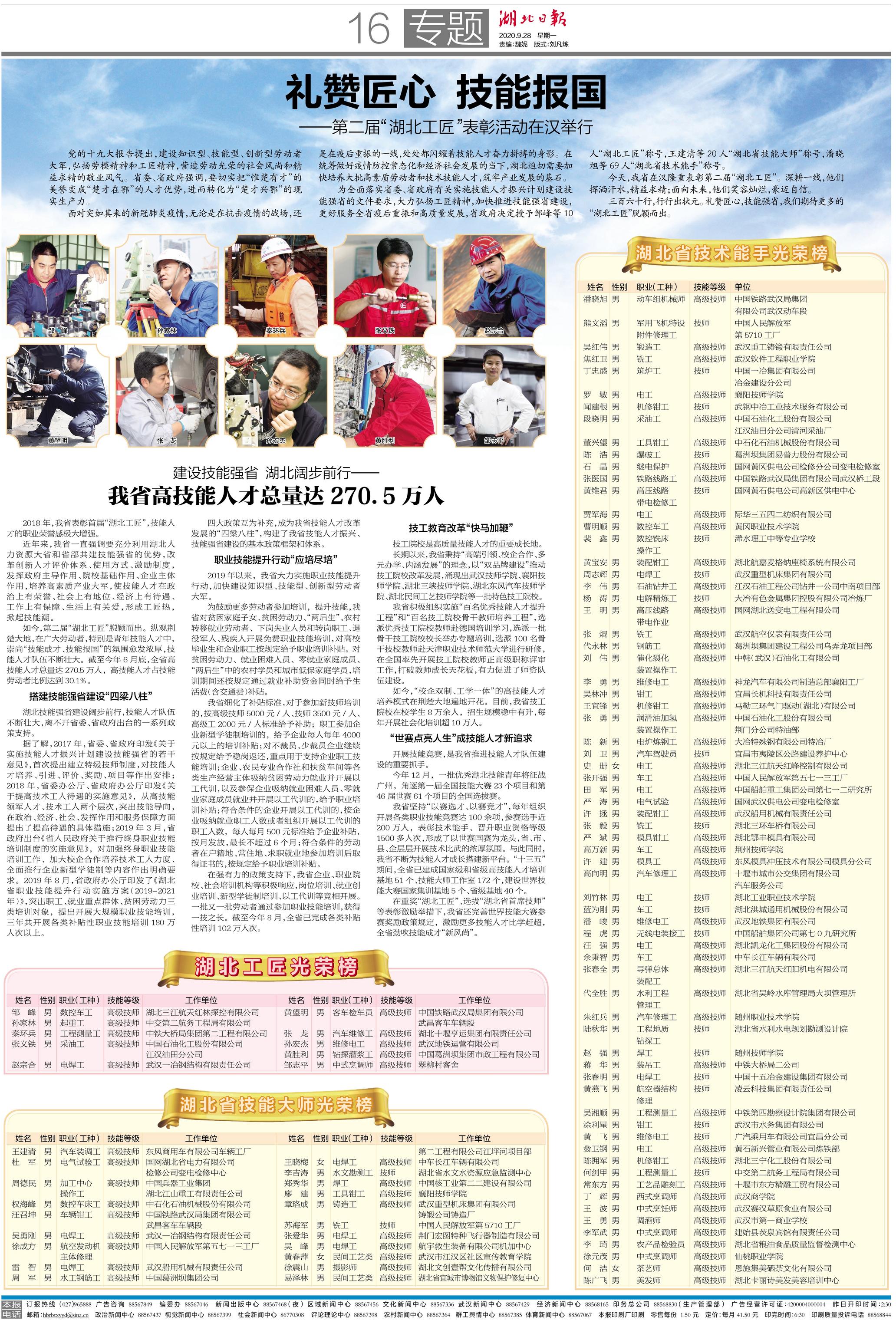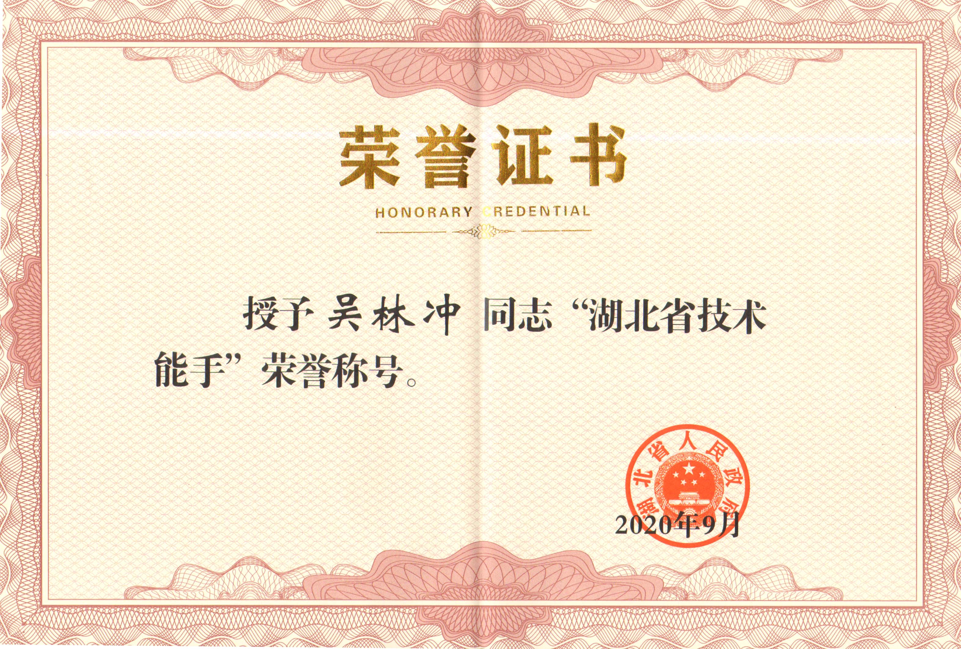吳林沖被評(píng)為“湖北省技術(shù)能手”