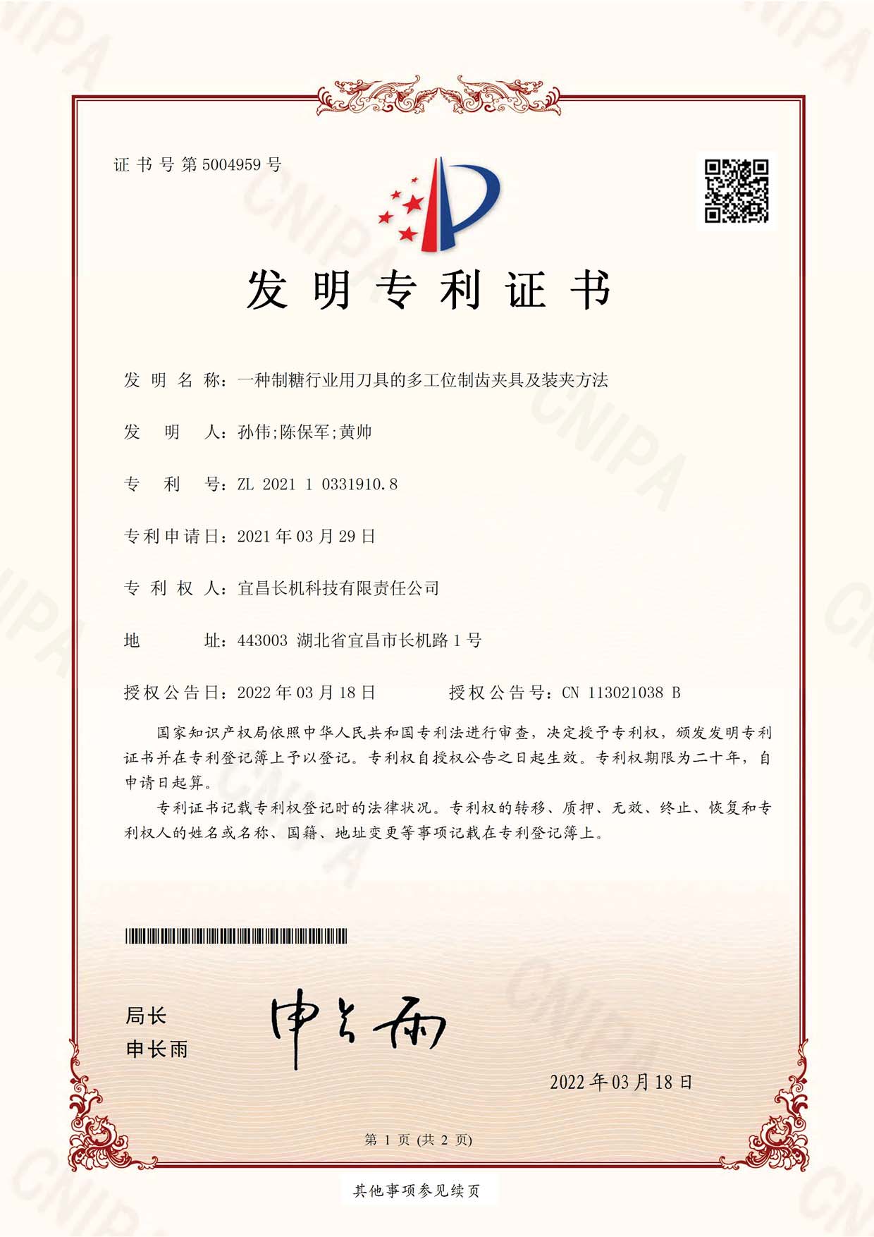 公司“一種制糖行業(yè)用刀具的多工位制齒夾具及裝夾方法”榮獲發(fā)明專利