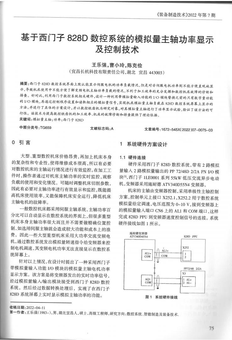 王樂強、曹小玲、陳克儉在《裝備制造技術》雜志上發(fā)表論文