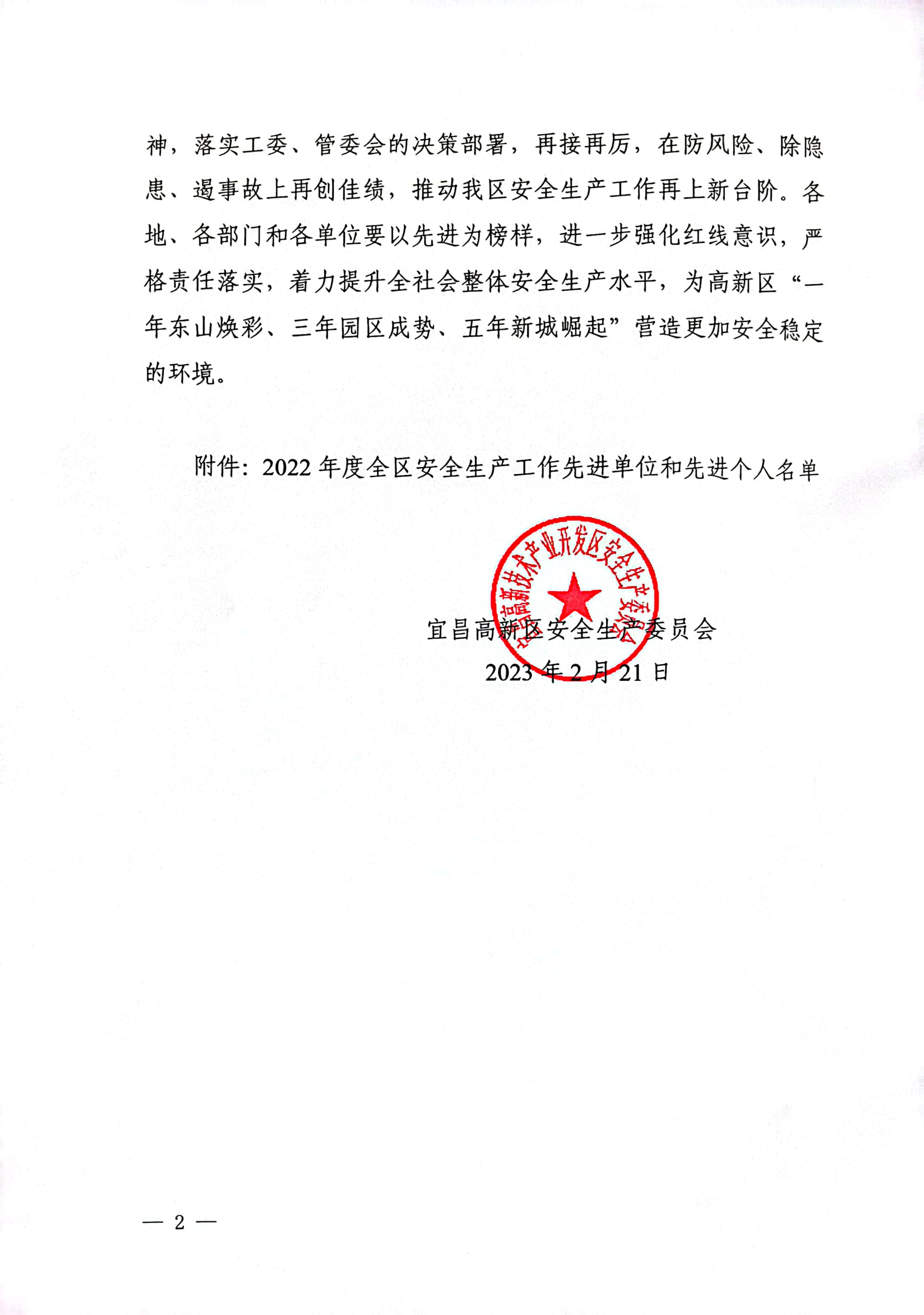 周澤紅同志被評為“2022年度高新區(qū)安全生產(chǎn)工作先進個人”