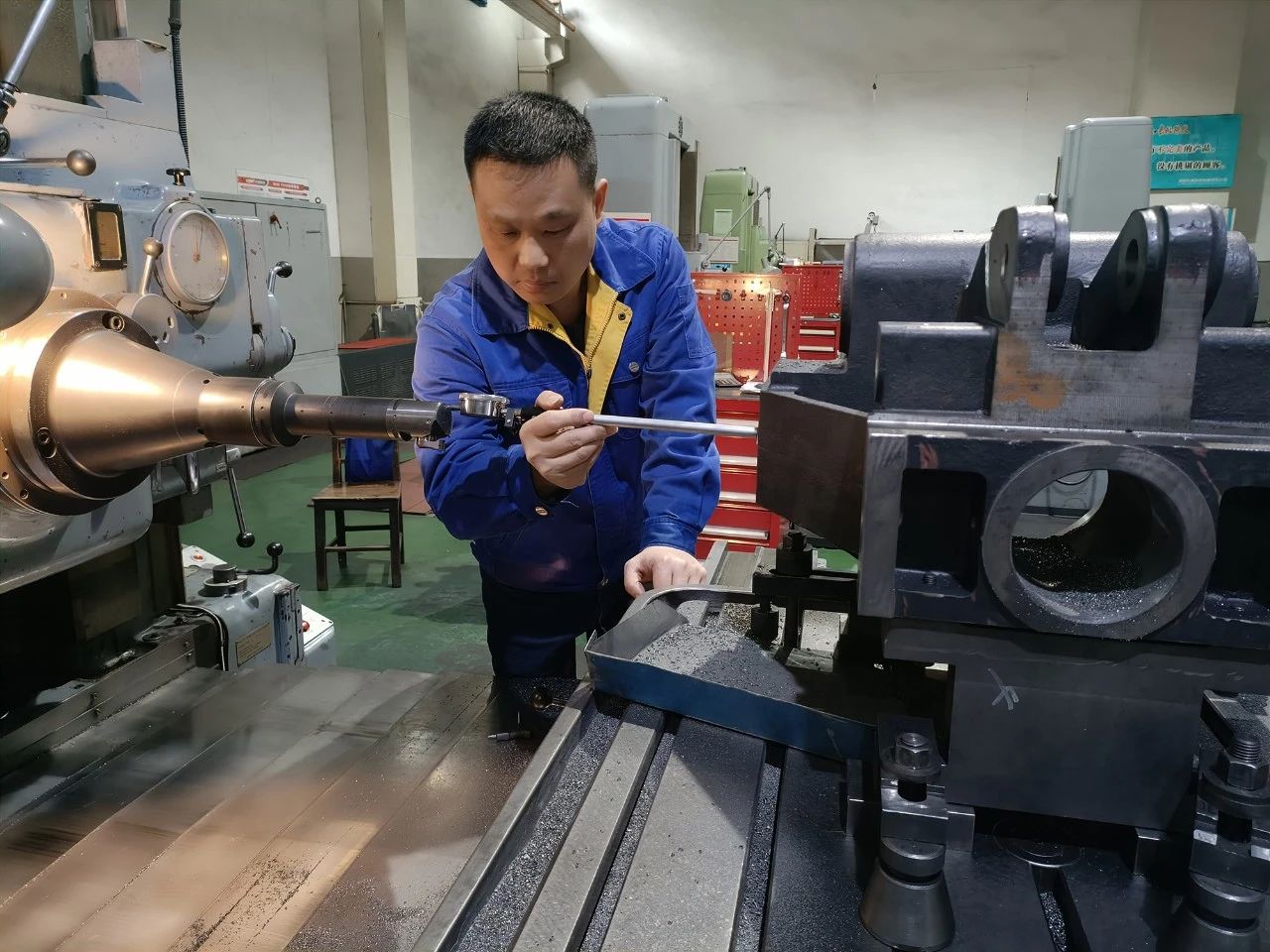 1999年,結(jié)束實(shí)習(xí)的游軍正式邁進(jìn)了人生的第一個(gè)工作崗位——長(zhǎng)江機(jī)床廠(宜昌長(zhǎng)機(jī)的前身),他被分配到了深孔鏜車(chē)間。入職后,面對(duì)33米長(zhǎng)的鏜床,游軍有些望而生畏,但想到自己將來(lái)能熟練操作它,他就熱血沸騰,斗志昂揚(yáng)。深孔鏜工是鏜工中的高難項(xiàng),需要完成長(zhǎng)管體內(nèi)部的精密打孔,公差只有幾毫米,稍有不慎就會(huì)失敗。而當(dāng)時(shí),深孔鏜工匠人稀缺,學(xué)習(xí)資料也極其匱乏,年輕的游軍陷入了迷茫。但是轉(zhuǎn)念一想,游軍告訴自己,既然選擇了這條路,就要一鼓作氣,只有汲取前人經(jīng)驗(yàn),自己又刻苦鉆研,才能出師。于是,他開(kāi)始跟著老師傅學(xué)習(xí),老師傅到哪里去,他就跟到哪里。哪怕很多操作他還不明白,也要跟著老師傅一遍一遍地摸索。老師傅下班后,游軍也會(huì)經(jīng)常留下來(lái),反復(fù)練習(xí)操作。