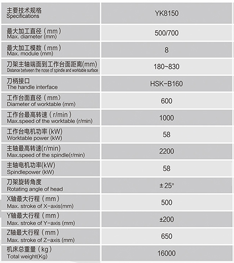 4) YK8150具備自動換刀功能,實現(xiàn)粗、精加工自動轉(zhuǎn)換,降低刀具成本;