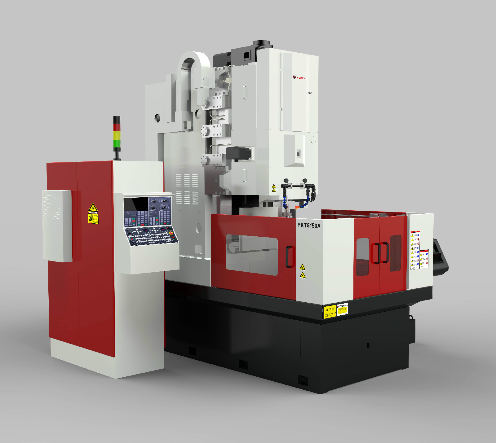 2.機(jī)床具備刀具提拉功能、工作臺(tái)采用滾動(dòng)軸承定心。主運(yùn)動(dòng)由交流變頻電機(jī)驅(qū)動(dòng),切削時(shí)通過交流伺服電機(jī)驅(qū)動(dòng)立柱移動(dòng)實(shí)現(xiàn)徑向進(jìn)給;因機(jī)床具備刀架提拉機(jī)構(gòu),特別適合加工深孔內(nèi)齒,同時(shí)大幅提升雙聯(lián)齒輪及不同齒厚的內(nèi)、外齒加工效率??筛鶕?jù)切削需要設(shè)置循環(huán)次數(shù)及每次循環(huán)的徑向切入量。